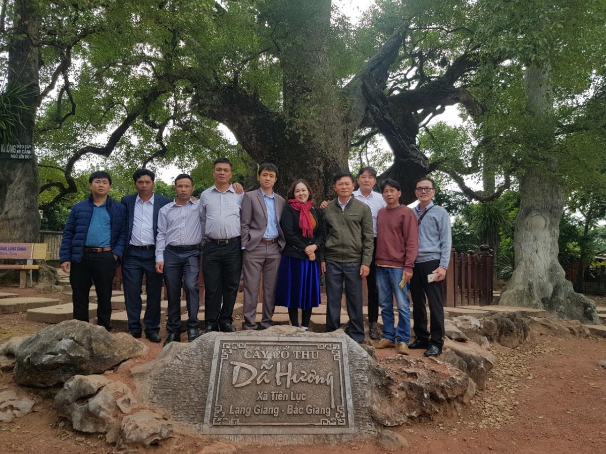 Đoàn công tác chụp ảnh lưu niệm tại cây Dã Hương, huyện Lạng Giang, tỉnh Bắc Giang