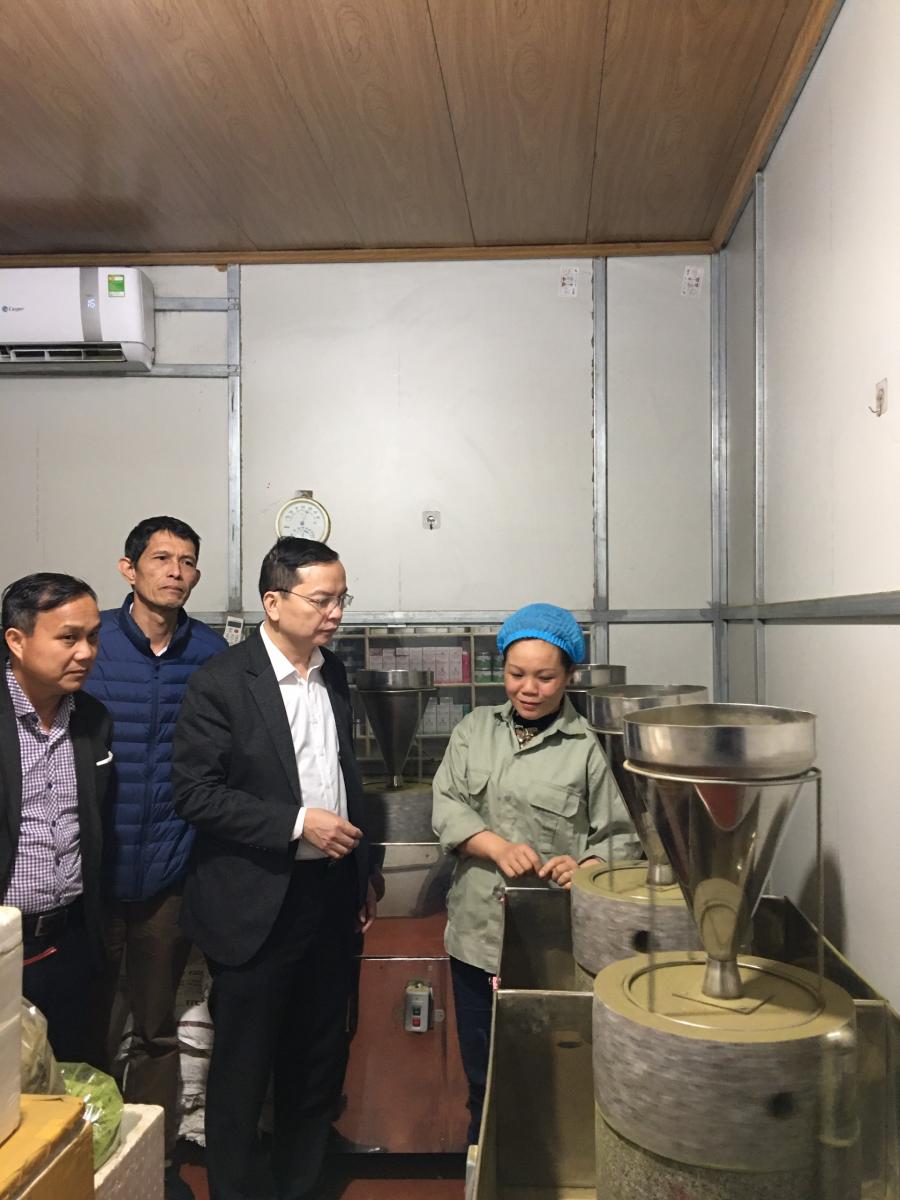 Ông Trần quang Hùng - Phó Chủ tịch Liên minh HTX tỉnh kiểm tra dây truyền sản xuất của HTX
