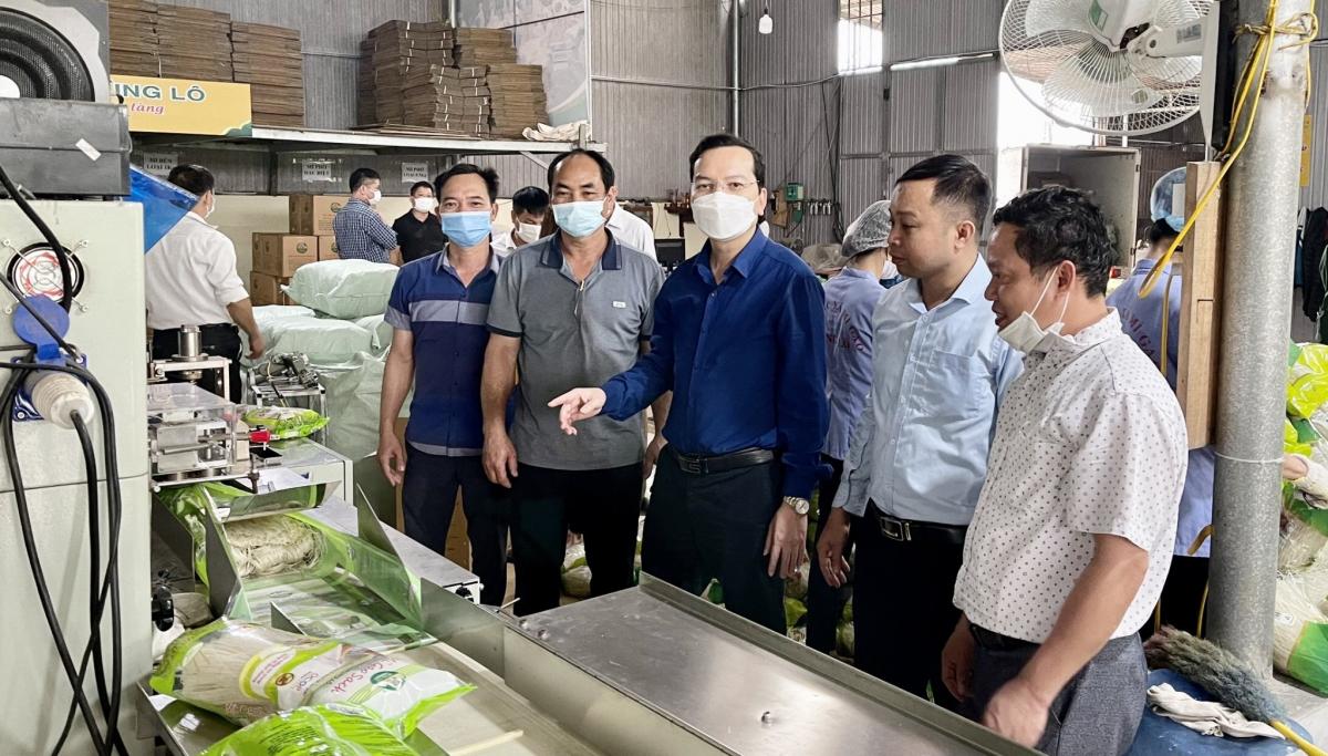 Đoàn công tác được thăm quan, học tập quy trình sản xuất và đóng gói mì của HTX mì gạo Hùng Lô