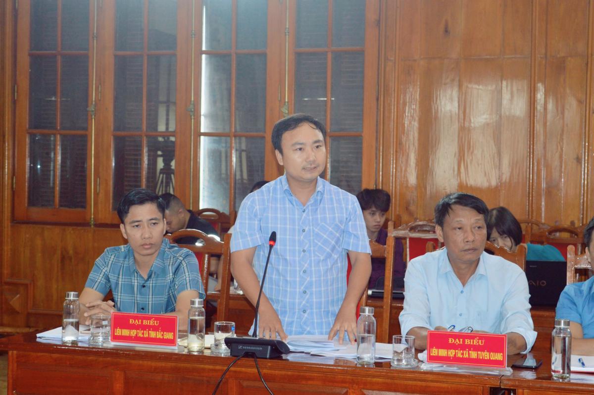 Đồng chí Nguyễn Đức Hiền, Chủ tịch Liên minh HTX tỉnh Bắc Giang cùng các đồng chí lãnh đạo Liên minh HTX các tỉnh tham dự buổi Tọa đàm