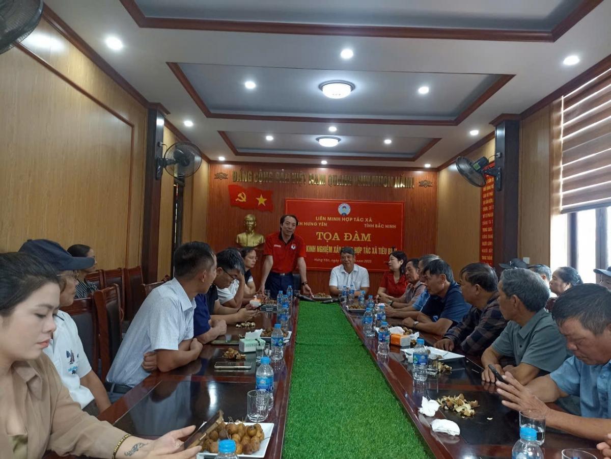 Trong chương trình thực tế tại tỉnh Hưng Yên từ ngày 17-19/9/2025, Đoàn công tác đã có buổi tọa đàm với Liên minh HTX tỉnh Hưng Yên về kinh nghiệm xây dựng Hợp tác xã tiêu biểu. Ông Phạm Minh Hiền, Ủy viên Ban chấp hành Liên minh HTX Việt Nam, Chủ tịch Liên minh HTX tỉnh Bắc Ninh phát biểu trao đổi tại hội nghị. Tính đến ngày 31/8/2025, tổng số HTX trên địa bàn tỉnh Bắc Ninh là 2030 HTX; trong đó: Lĩnh vực nông, lâm nghiệp, thủy sản là 1383 HTX; lĩnh vực phi nông nghiệp là 599 HTX; Quỹ tín dụng nhân dân là 46 Quỹ. Năm 2025, tỉnh Bắc Ninh vinh dự có 05 HTX tiêu biểu và được trao giải thưởng Ngôi sao hợp tác xã - CoopStar Awards 2025 trong tổng số 100 HTX tiêu biểu do Liên minh HTX Việt Nam bình chọn; ông đã chia sẻ một số kinh nghiệm trong xây dựng HTX tiêu biểu của tỉnh Bắc Ninh.