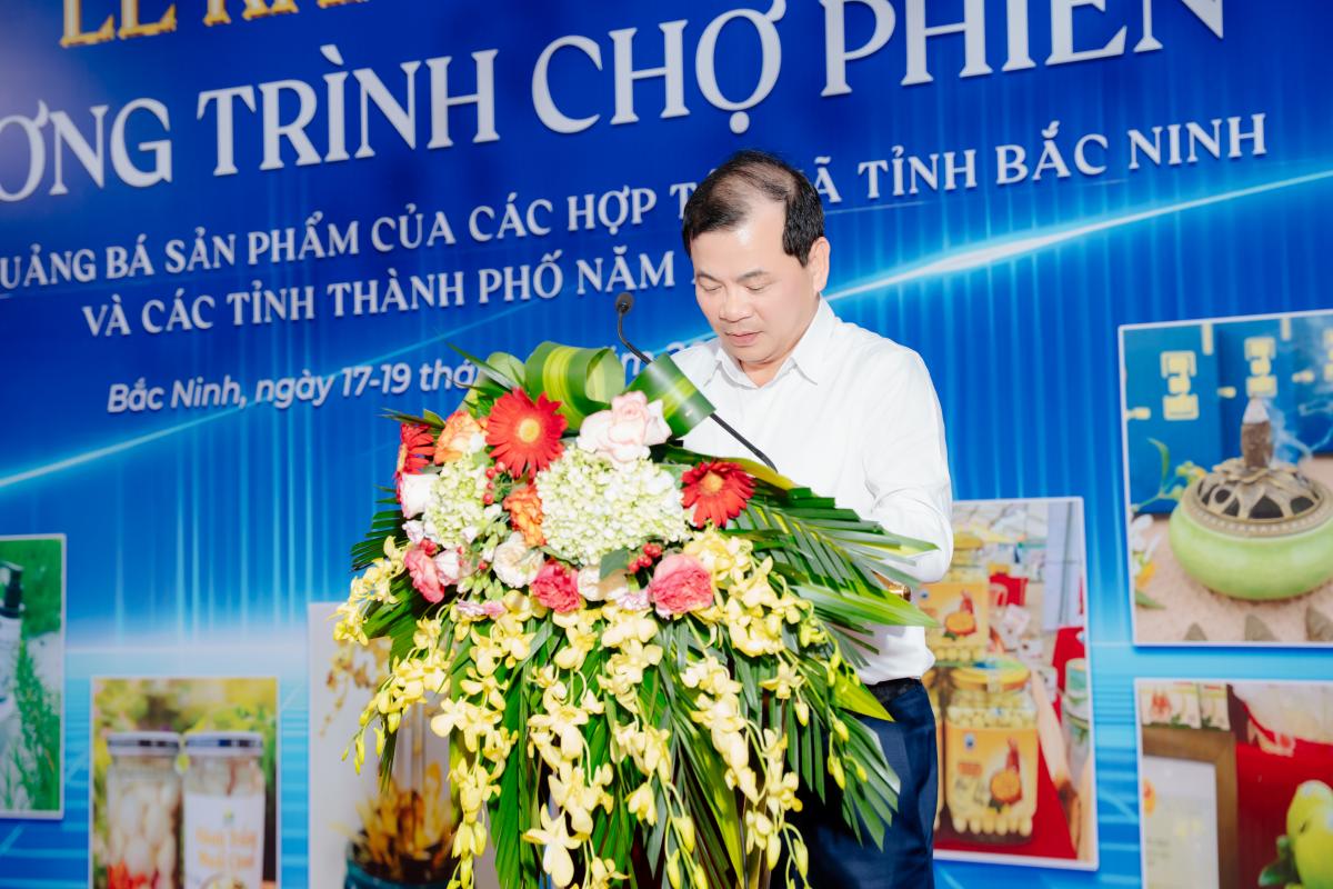 Phát biểu tại Hội nghị khai mạc, đồng chí Phan Thế Tuấn, Phó Chủ tịch UBND tỉnh Bắc Ninh, đã đánh giá cao nỗ lực của Liên minh HTX tỉnh trong công tác xúc tiến thương mại và kết nối cung cầu thời gian qua. Chương trình Chợ phiên là cơ hội quý báu để các HTX, doanh nghiệp chủ động gặp gỡ, trao đổi kinh nghiệm, nâng cao năng lực quản trị và chất lượng sản phẩm. Đồng chí Phó Chủ tịch UBND tỉnh cũng đề nghị Liên minh HTX tỉnh và các sở, ngành liên quan tiếp tục đẩy mạnh hỗ trợ, tạo điều kiện thuận lợi cho các HTX phát triển bền vững, đặc biệt là trong việc tiếp cận vốn, chuyển giao khoa học công nghệ và mở rộng thị trường.